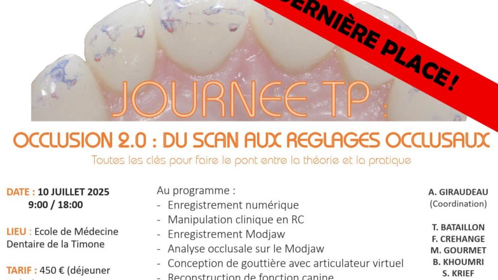 Le CNO SUD a le plaisir de vous inviter à sa journée de formation pratique, où divers intervenants perfectionneront vos connaissances en occlusodontie, dans le cadre d'un TP à l'école de Médecine Dentaire de la Timone, à Marseille. Une date : le 27 juin 2024, de 9h à 18h Un... read more →