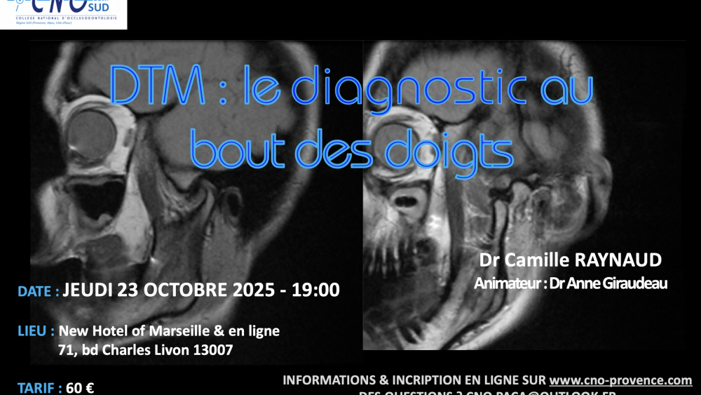 Le CNO SUD a le plaisir de vous inviter à sa conférence, EN LIGNE UNIQUEMENT, présentée par le Dr Romain OHANESSIAN : Les migrations dentaires secondaires chez le patient parodontal Une date : le 06 Mai 2025 (uniquement en distanciel) Un tarif : 60€ (gratuit pour les étudiants de la... read more →