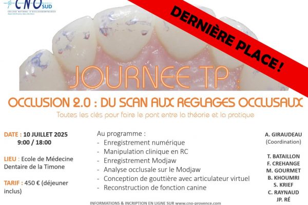 Le CNO SUD a le plaisir de vous inviter à sa journée de formation pratique, où divers intervenants perfectionneront vos connaissances en occlusodontie, dans le cadre d'un TP à l'école... read more →